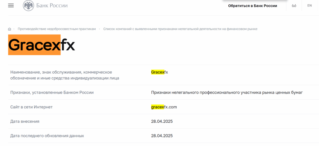 Проверить GraceX на сайте Банка России